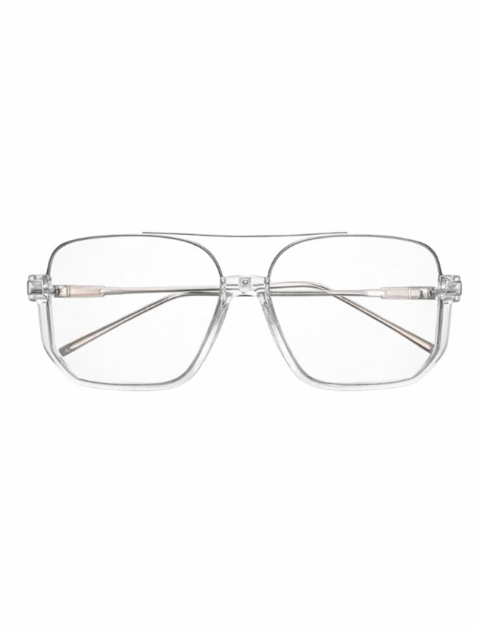 Designed with a transparent frame and oversized square aviator silhouette, these fashion-forward shades bring a clean, minimalist edge to any outfit. The lightweight construction and subtle metal detailing create a polished look that pairs perfectly with everything from denim and knits to structured blazers and summer dresses.