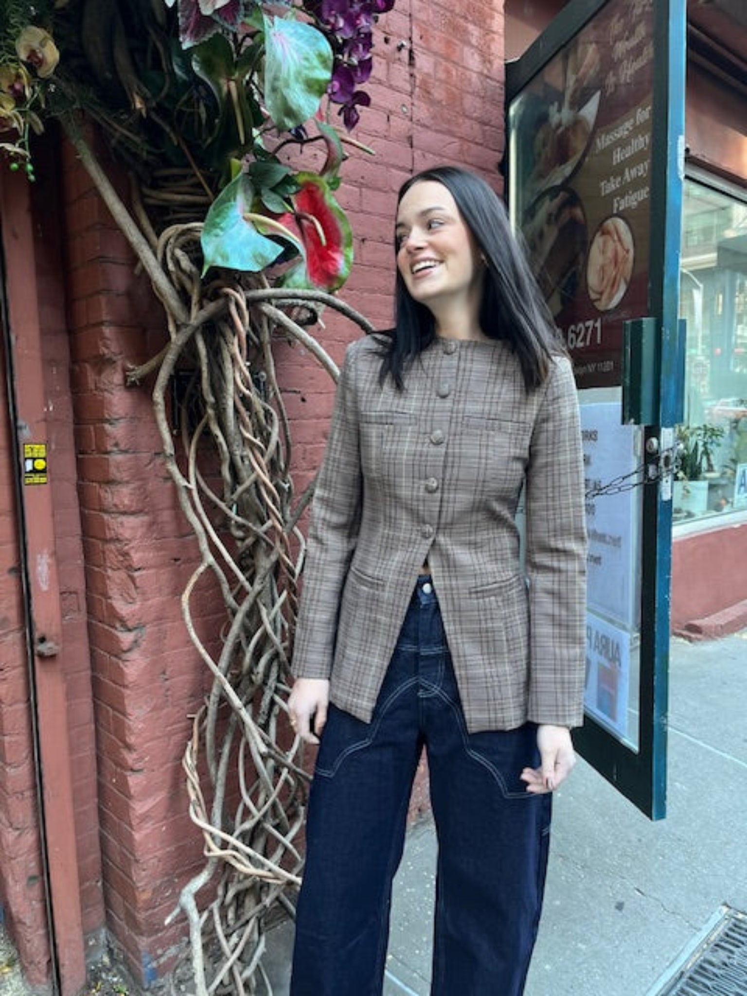 Tailored to perfection, this woven gingham blazer is all about structure and sophistication. Featuring a sleek button-down front and a slim, contoured waistline, it flatters every silhouette while exuding timeless charm. The classic pattern gets a modern update with its fitted cut—perfect for pairing with your favorite denim. A power piece that transitions effortlessly from boardroom to brunch.